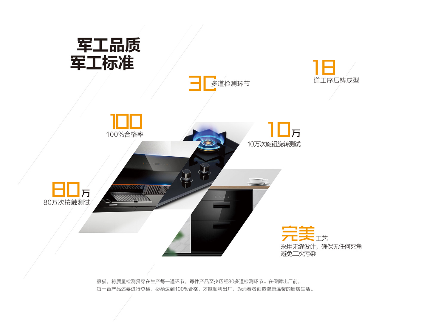 公司严格执行IS09001质晕管理体系。由生产品质技术等相关部门对员工进行专业培训和综台考评,进步确保产品品质的优质和稳定。质量控制实现点“管理,核心技术及重点工序由品质和技术部联合监控,严格筛查,成就熊猫厨卫电器产品良好的市场口碑,为品牌推广和产品销售打下坚实基础。我们坚信,产品质量是企业长远发展的关键性一步。