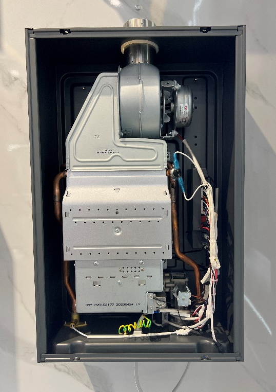 机身尺寸:550×350×155mm16L琉璃金烤漆面板 直流风机智能恒温比例阀 无氧铜水箱:1.2kg长六排4分段燃烧系统 IMD触摸显示屏 机械防冻意外熄火保护 水箱防漏无盘管设计漏电保护电源线 10台起定