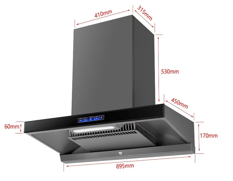 1级能效 40叠三速全封电机 图腾体感触摸开关自动热能清洗功能 内蜂窝网+外置网总功率:328W 风轮:280×155mm风量:≥22m³ 风柜上置式净重:23.5kg 毛重:28.5kg